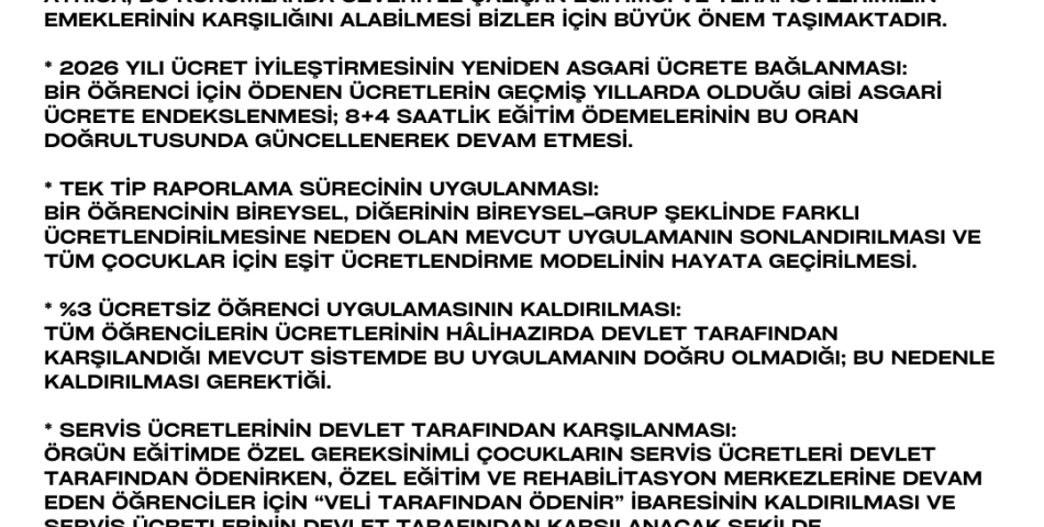 Değerli Özel Eğitim Camiası;